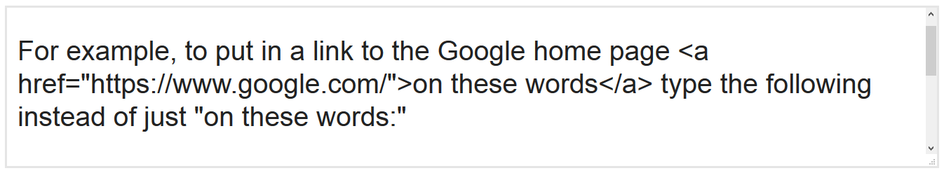 DeleteFor example, to put in a link to the Google home page on these words type the following instead of just "on these words:"